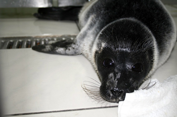 W dniu 4 maja 2009 roku, Stacja Morska w Helu została powiadomiona o małej foczce leżącej na tzw. dużej plaży w Helu. Po przybyciu na miejsce zgłoszenia pracownicy Stacji odnaleźli szczenię, które okazało się być osobnikiem z gatunku foka obrączkowana. Foka na plaży w HeluFoka obrączkowana, zwana również nerpą, jest najmniejszą z żyjących w Bałtyku fok. Ubarwienie jej ciała jest zwykle szare, z charakterystycznymi pierścieniami na futrze i od tych właśnie obrączek wzięła się jej nazwa. Mała głowa o charakterystycznym "kocim" pyszczku osadzona jest na krótkiej szyi, nerpa posiada również jasne wąsy o paciorkowatej strukturze. Jest to gatunek arktyczny, występujący jako relikt w Bałtyku (głównie w Zatokach Botnickiej i Fińskiej). Foki te żyją w rejonach pokrytych lodem i śniegiem. Ich naturalne siedliska są ulokowane w północnej części Morza Bałtyckiego. Populacje foki obrączkowanej występują również w jeziorach polodowcowych: Ładoga, Sajmaa. W lodzie zwierzęta te utrzymują otwory oddechowe, które są od siebie oddalone o około 2 km. Są one bardzo czuje i ciekawskie. Foka w szpitalikuOdwiedziny na polskich wybrzeżach są niezwykle rzadkie. W czerwcu roku 2002 Gdańska Stocznia Remontowa zawiadomiła nas o obecności foki w jednym z basenów portowych. Na początku roku 2005 znalazła się u nas foka obrączkowana, którą poddaliśmy rehabilitacji w foczym szpitaliku, a następnie wypuściliśmy na wolność. W roku 2006 na polskim wybrzeżu, w Rewalu odnaleziono martwą fokę obrączkowaną. Tego samego roku, w Dźwirzynie zaobserwowano żywego przedstawiciela tego gatunku. Wszystkie foki, które trafiają do naszej Stacji, poddawane są leczeniu i rehabilitacji. Kiedy nadchodzi czas porodu samice wychodzą na pola lub kry lodowe i tam wydają na świat potomstwo. W śniegu samica robi norę, na końcu której znajduje się gniazdo i zejście do wody. Młode jest tam bezpiecznie ukryte, a dodatkowo chroni go lanugo, czyli białe futerko, w którym przychodzi na świat. Okres karmienia młodych trwa około 2 miesięcy. Foczka, która została odnaleziona na plaży jest osobnikiem bardzo młodym, ma około 3 tygodni. Jest to samiec, mierzy 75 cm a jego waga wynosi 12 kg. Powinna być jeszcze pod opieką matki, z tego powodu trafiła na obserwację do Stacji Morskiej.